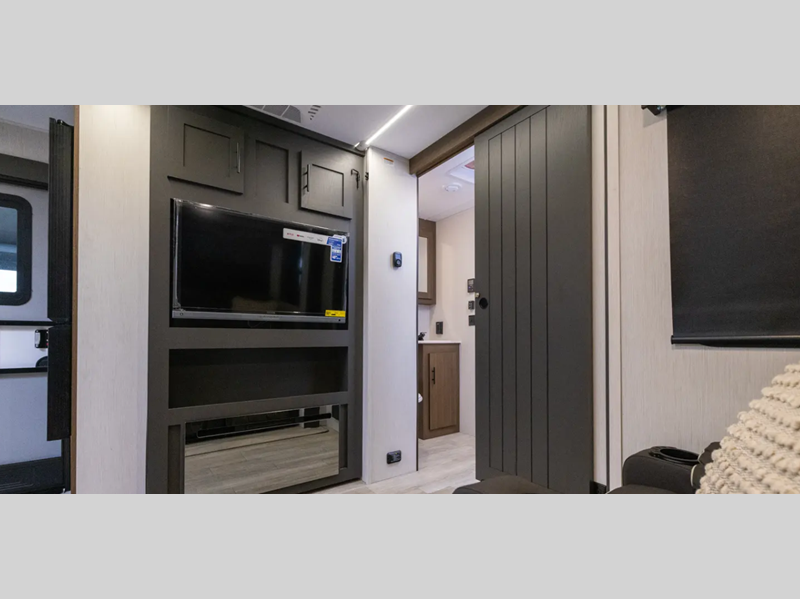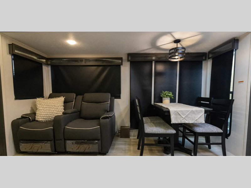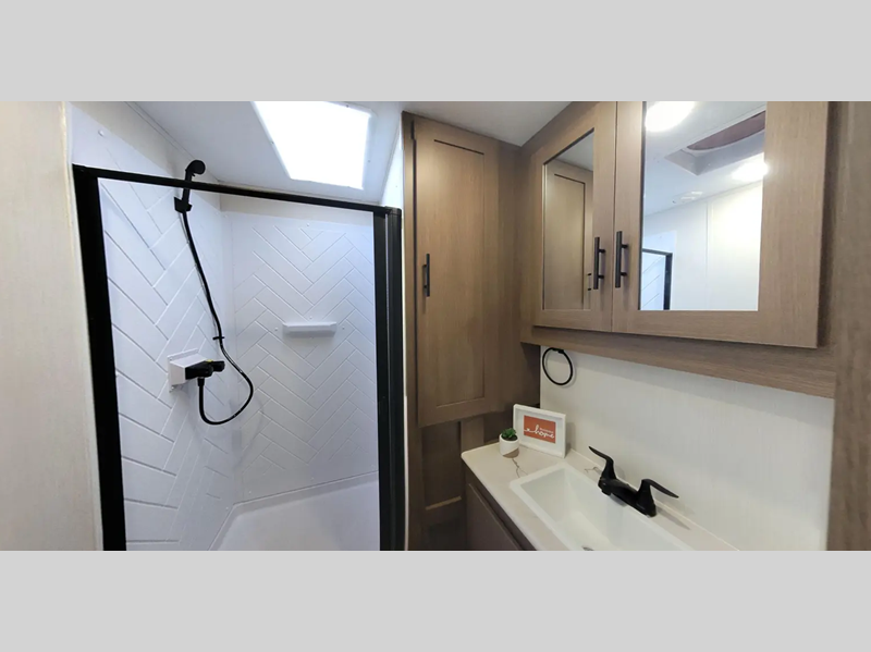 Sleeps 5 Slides 2 Length 33 ft 11 in Ext Width 8 ft Ext Height 11 ft 9 in Hitch Weight 945 lbs GVWR 11145 lbs Dry Weight 7916 lbs Cargo Capacity 3229 lbs Fresh Water Capacity 61 gals Grey Water Capacity 96 gals Black Water Capacity 32 gals Available Beds Maxx King Refrigerator Type 12V Refrigerator Size 10 cu ft Cooktop Burners 3 Shower Size 36" x 30" Number of Awnings 1 Water Heater Type On Demand Tankless TV Info 12V 2-Zone Smart TV Axle Count 2 Shower Type Standard Solar Wattage 200 watts Similar Floorplans