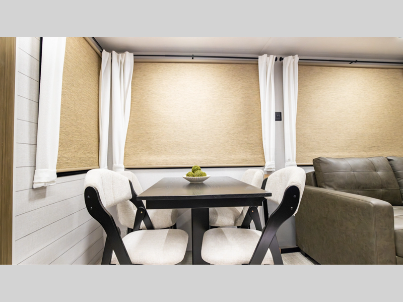Each destination trailer is built with a durable heated and enclosed Accessibelly, along with slide out awning toppers and a 7' slide out height in the living room so you can relax in comfort. There are JBL interior/exterior speakers, 4K awning blade lighting, and an on-demand tankless water heater to name a few more convenient features.